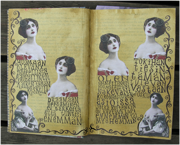 So, I´m back after a couple of weeks... Now I have a new spread of my art journal altered book to show you. It´s not quite ready yet...Those Ladies are from Itkupilli´s Gothic kit.